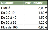 Tarification dégressive suivant la quantité commandée (vérification de la sélection au renvoi du devis).